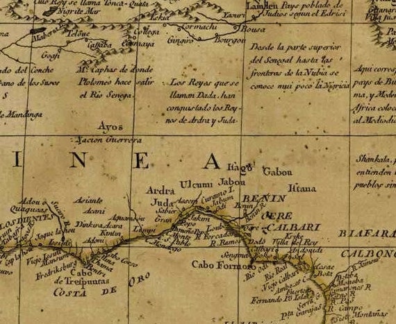 1771 Spanish Map of the African Continent Showing the Kingdom of