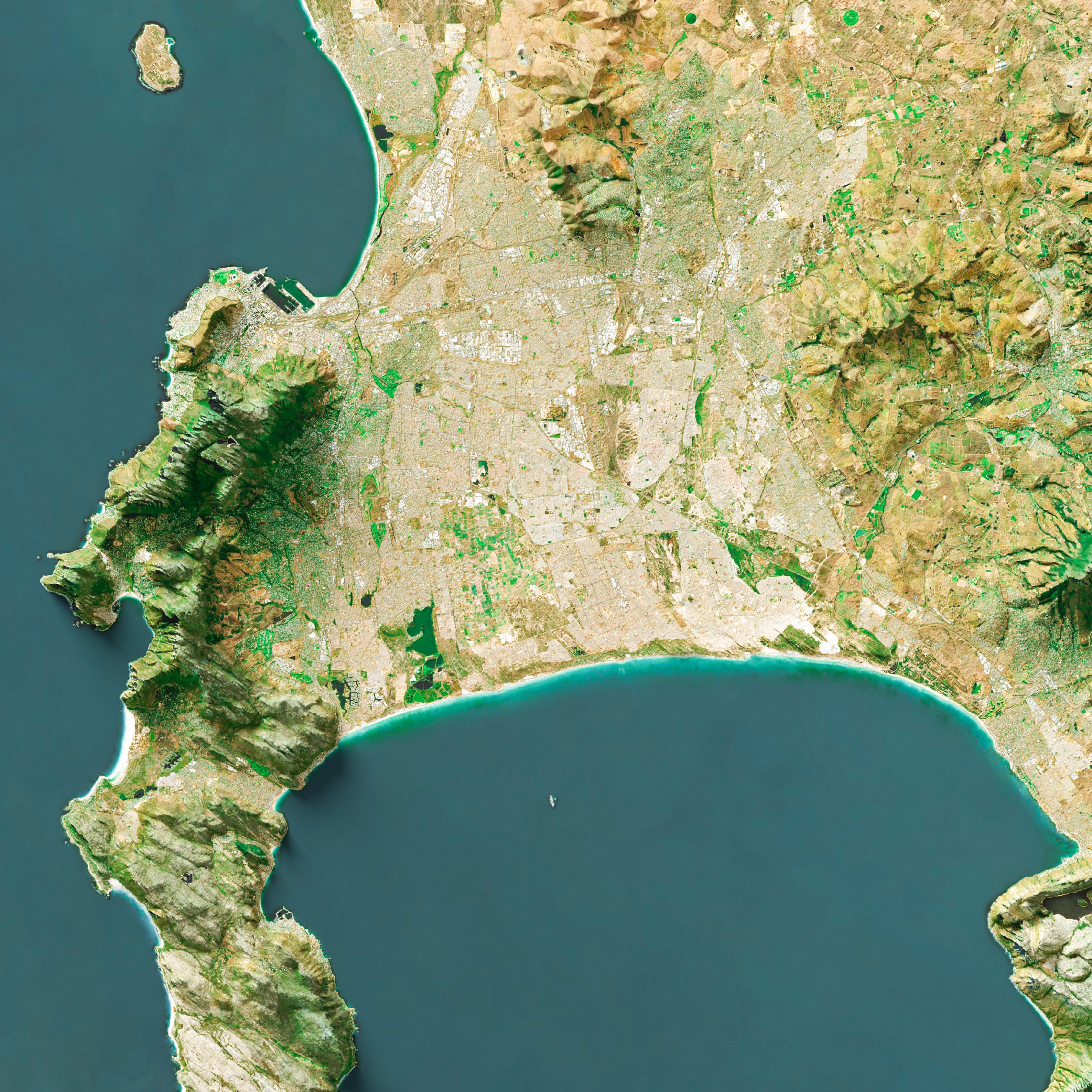 Cape Town, South Africa, Perspective View, Landsat Image over SRTM