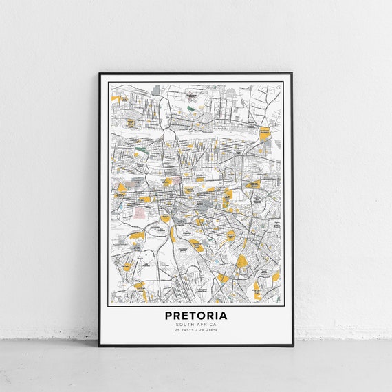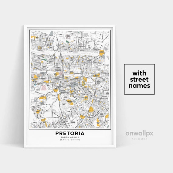 Pretoria Map Print, Street Names Pretoria Print, Printable Map of
